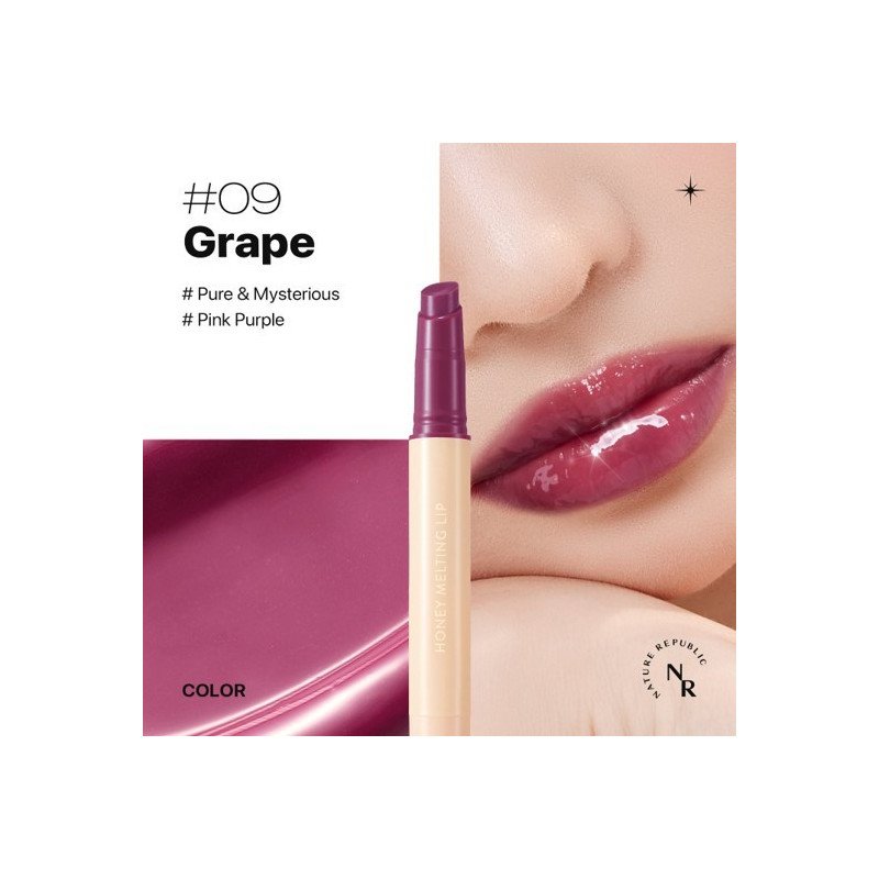Découvrez un soin maquillage hybride qui sublime vos lèvres tout en les nourrissant : le Honey Melting Lip en teinte 09 Grape offre une brillance douce et sophistiquée, teintée d’un raisin-framboise lumineux. Sa texture gel-baume fondante, évoquant du miel fondu, enveloppe les lèvres d’un film hydratant au fini miroir, idéal pour illuminer le visage.