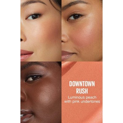 Blush crème-poudre satiné, rouge-brick sophistiqué pour un éclat urbain et un teint sculpté & lumineux.