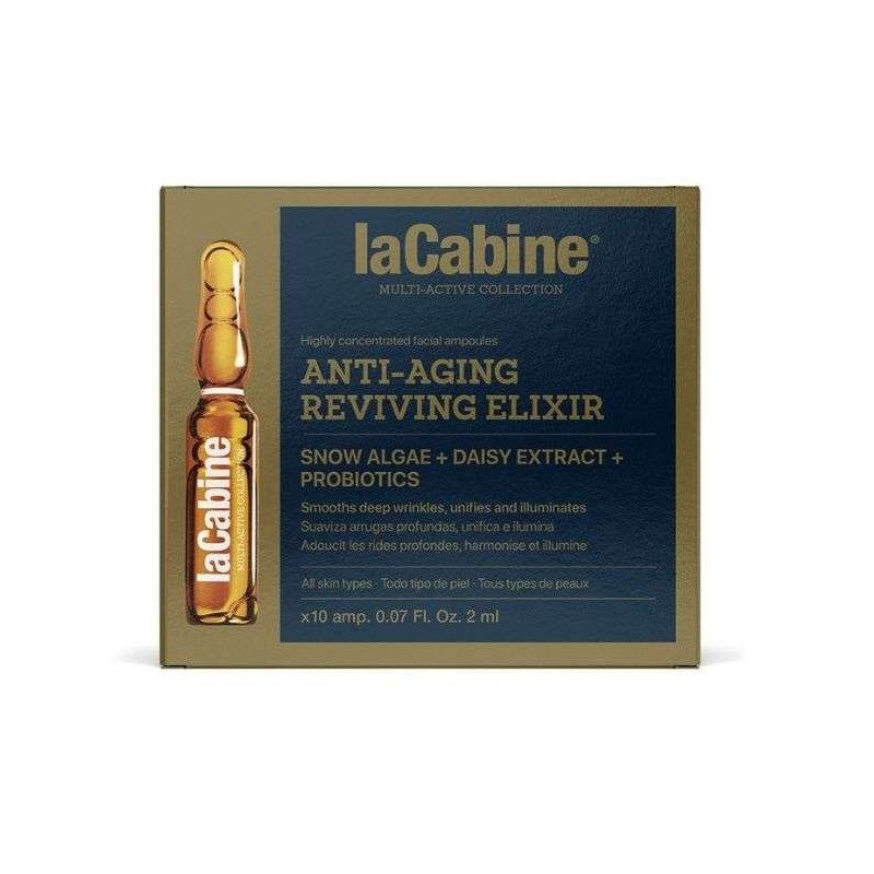 Donnez à votre peau mature le soin qu’elle mérite avec les ampoules Anti Aging Reviving Elixir de LaCabine. Ce rituel concentré combine une sélection d’actifs premium (algue des neiges en poudre, fleur de marguerite, probiotiques, algues rouges, carnosine…) pour cibler les 3 signes majeurs du vieillissement : rides profondes, manque d’éclat et taches pigmentaires. En seulement 10 jours, la peau se redensifie, le teint s’unifie et la texture cutanée retrouve une jeunesse vibrante. La formule pénètre rapidement, sans laisser de film, pour un confort optimal.